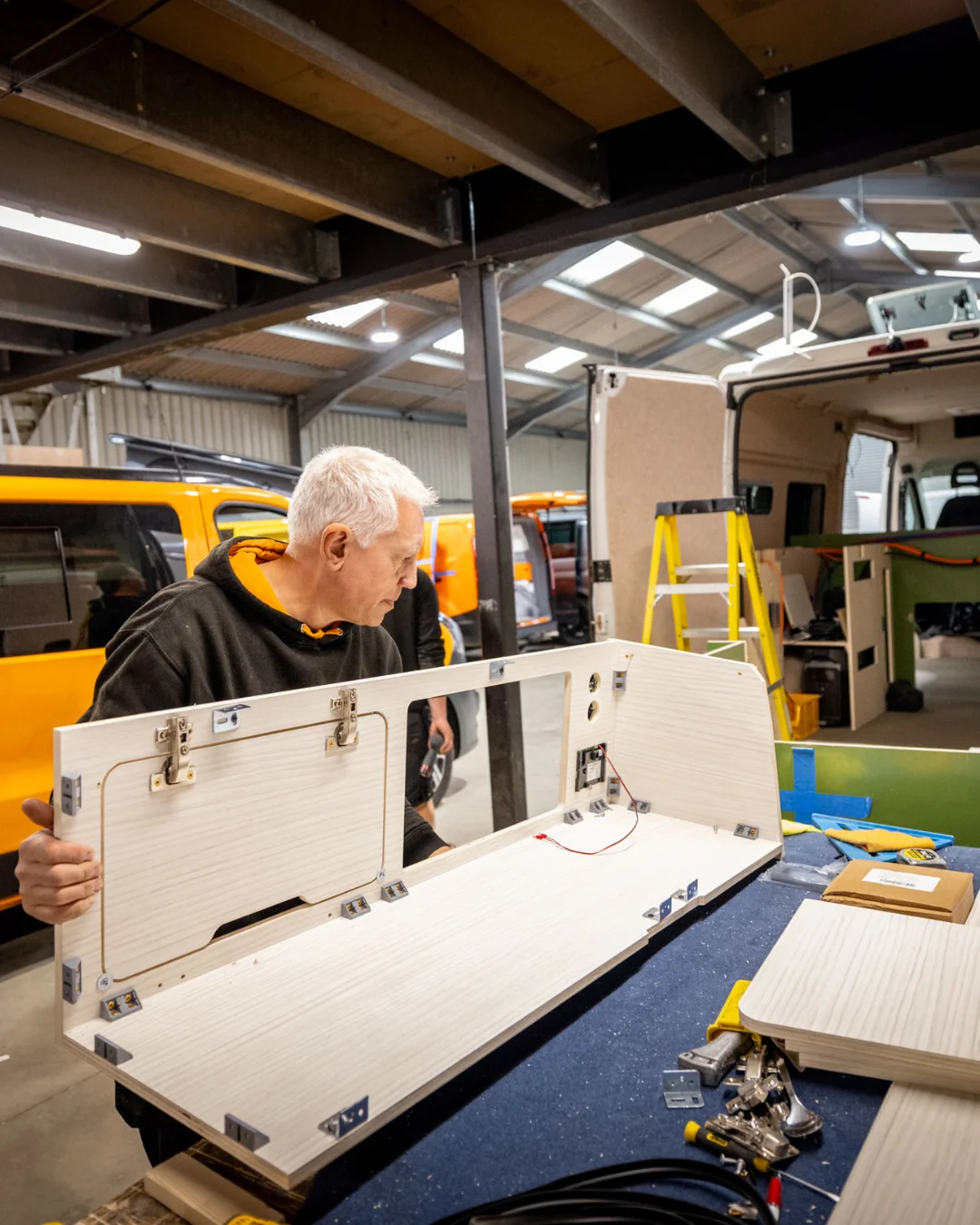 Based near Aylesbury, our skilled team combines expert craftsmanship with cutting-edge technology to deliver high-quality, space-saving furniture that enhances your camper van conversion. From compact kitchen units to fully fitted interiors, we work closely with you to design and build pieces that suit your needs, budget, and schedule.
